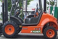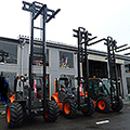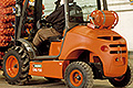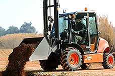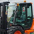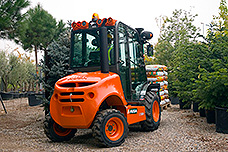 悪路や傾斜地のような地形で高い走破性を発揮する四輪駆動方式を採用したフォークリフトです。