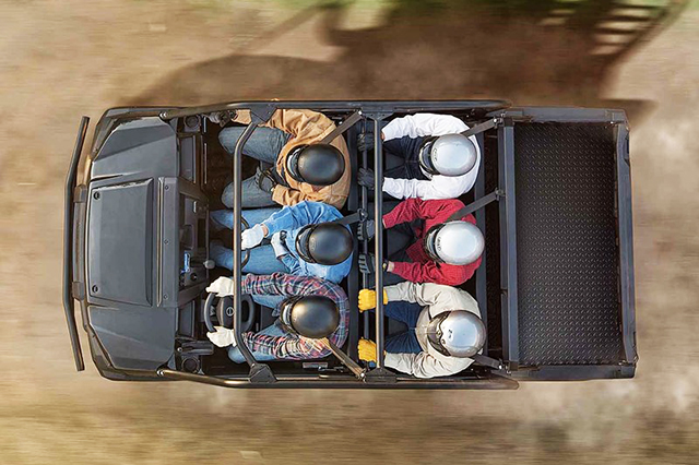 MULE PRO-FXT EPSは、3人乗りから6人乗りにシートをアレンジできるトランス・キャブ・システムを採用した高い積載能力を持つオフロード四輪車です。仕事でも遊びでも頼れるパートナーとなるこのモデルは、6人が乗車した状態でも、運搬および牽引能力は力強いまま。人も荷物もたっぷり運べるMULE PRO-FXTは、まさにマルチプレーヤーです。