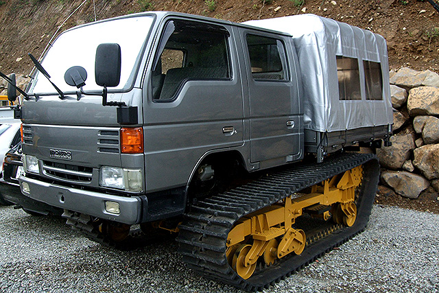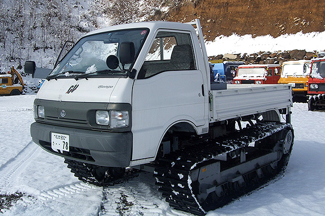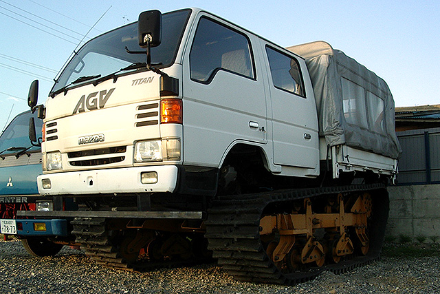 フルクローラーシステム"AGV"はゴムクローラーによるグリップ力を生かしタイヤでは走行できないような雪上、不整地などで威力を発揮します。