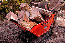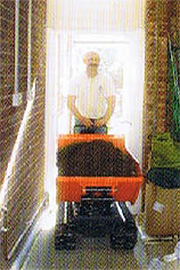 各種の土木・建設・屋内解体・道路・公園・墓地・造園・裏庭作業・地下・各種プラント内現 場・農業・各種のメンテナンス現場など限られたスペース内でパワーのある猫車代わりに細身 のボディーが役立ちます。 またゴムクローラーの低接地圧により芝生や簡易舗装通路などにはやさしい走行が出来ます。