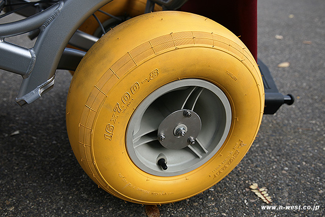 乗用車用タイヤと同じ構造のチューブレスタイヤを使用しています。