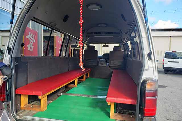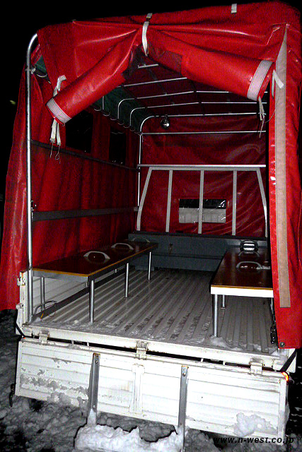 - 荷台にベンチシートを設置して、10名程度乗車可能