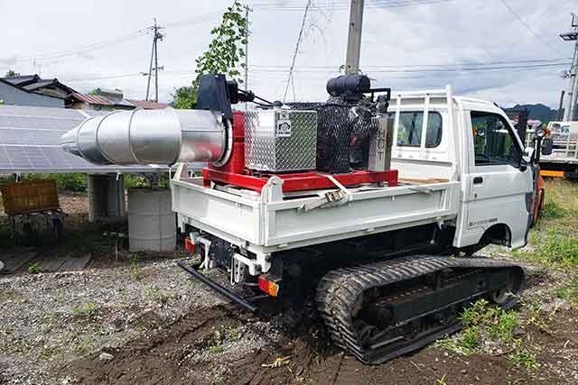 - 軽トラックの荷台やフォークリフトに載せて使用。